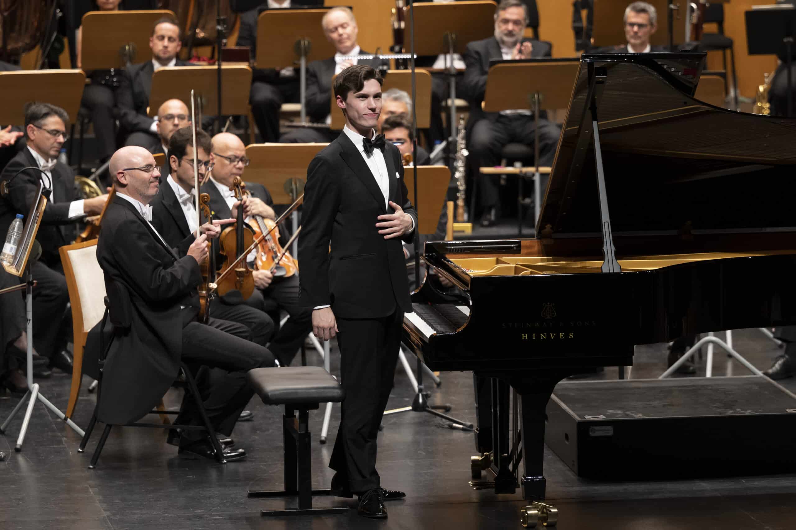 El Festival Internacional de Santander (FIS) ha propiciado el reencuentro de Jaeden Izik-Dzurko, ganador del Concurso Internacional de Piano de Santander Paloma O’Shea 2022, con el público del Palacio de Festivales de Cantabria. Un reencuentro musical en el que el joven pianista canadiense ha interpretado el Concierto para piano y orquesta n.º 4 en sol mayor, op. 58, de Ludwig van Beethoven, junto a la Orquesta Sinfónica del Principado de Asturias (OSPA) y su director titular, el maestro Nuno Coelho. La Sinfonía n.º 4 en mi bemol mayor WAB 104, “Romántica”, de Anton Bruckner, completó el programa de esta jornada, patrocinada por El Diario Montañés.